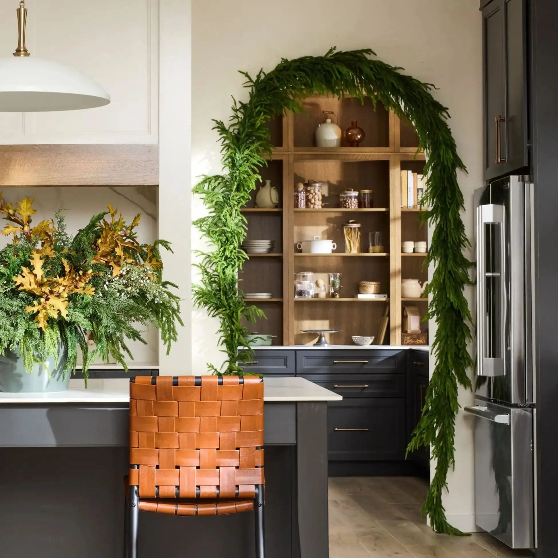 These Norfolk pine garlands bring you the feeling of fresh and elegant, they are beautiful and realistic. Brighten your home with these Norfolk pine garlands. They can work harmoniously with any decor and style.